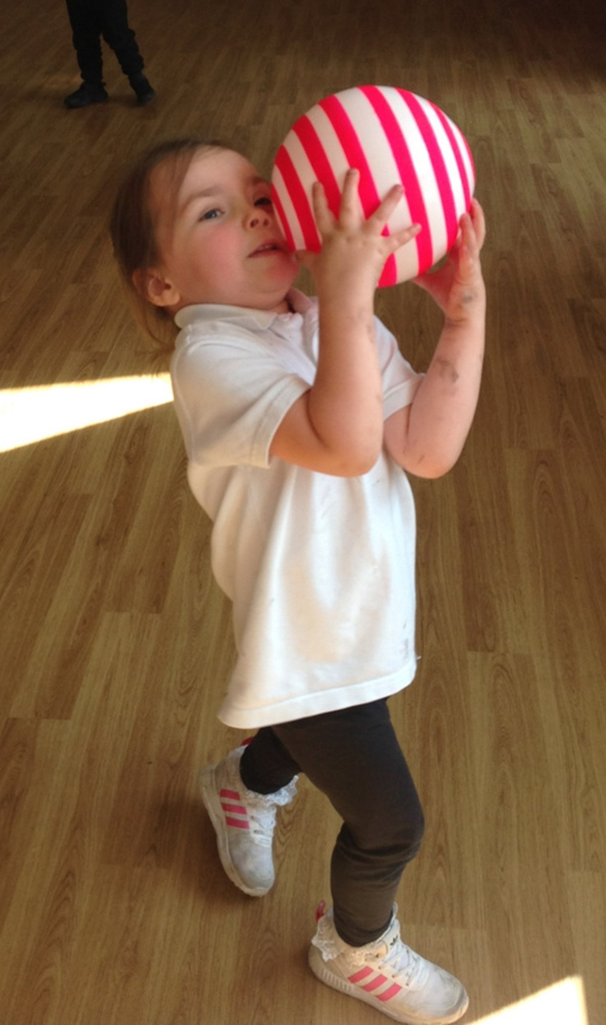 Your child will need a white T-shirt, blue/black shorts/leggings/joggers and gym shoes.